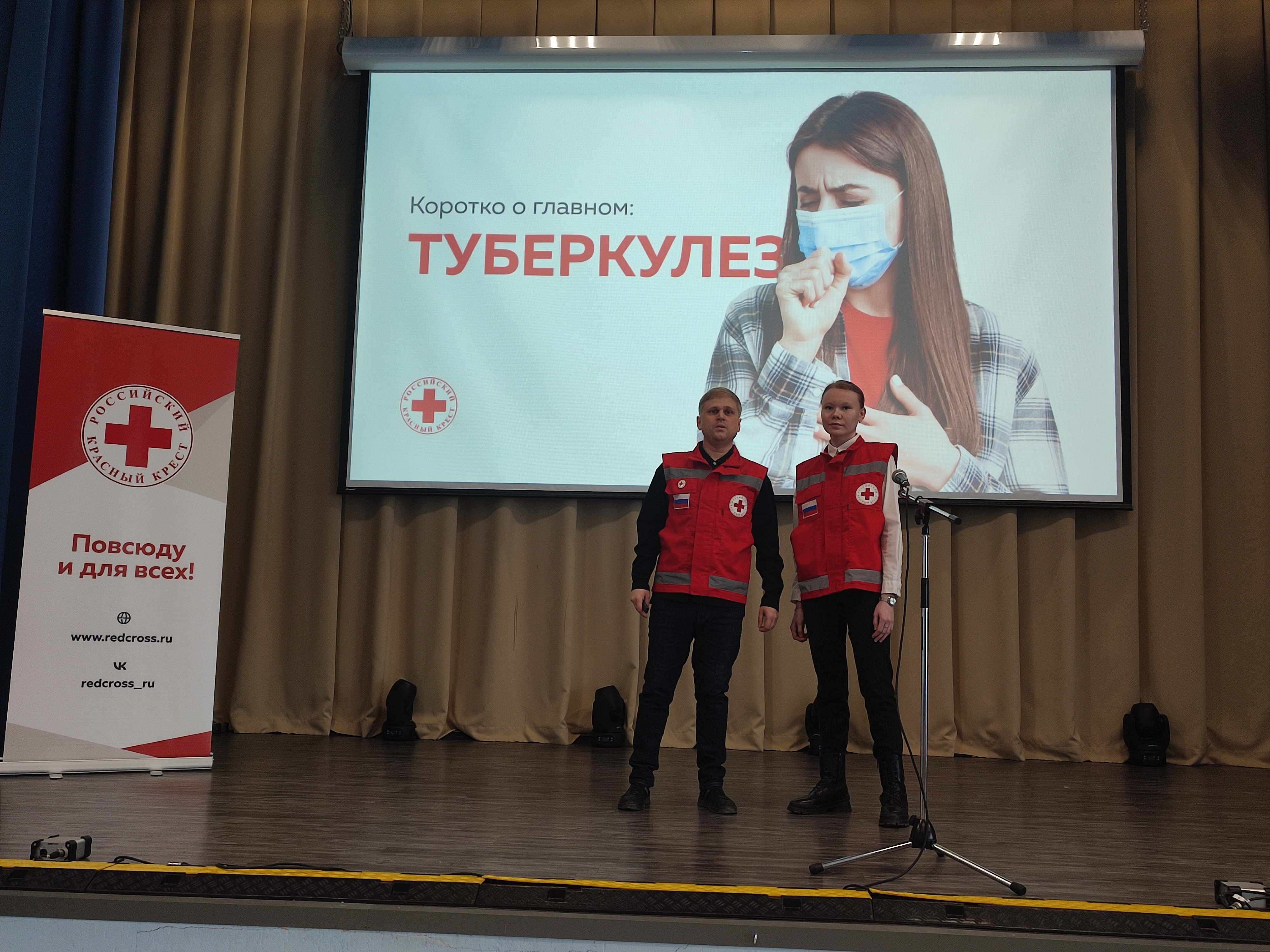 Также волонтеры РКК провели мультимедийную лекцию с просмотром короткометражного фильма о туберкулезе и его профилактике. В мероприятии приняло участие более 100 человек.