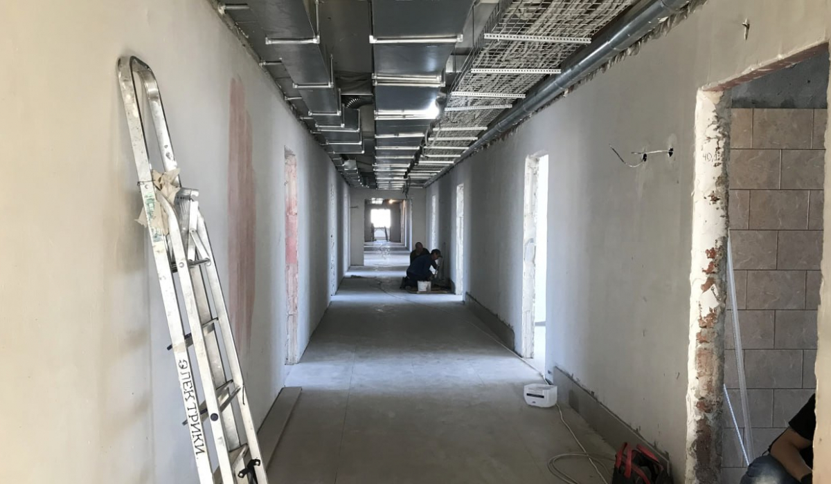 Самый масштабный ремонт — в четырехэтажной поликлинике, расположенной в поселке Буланаш. Он начался в прошлом году и сейчас уверенно движется к финишу. Здесь примерно на 70 процентов готовы коммуникации, черновые работы завершены, началась чистовая отделка помещений.