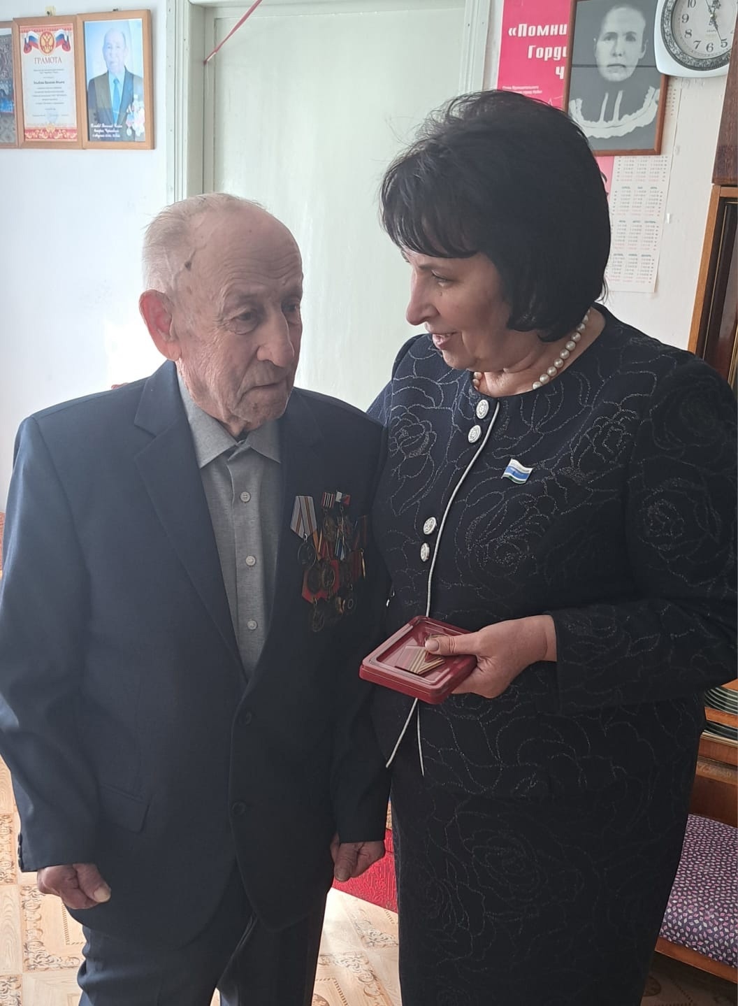Депутат Заксобрания Свердловской области Елена Трескова вручила президентскую медаль к юбилею Победы Василию Хлыбову Василию Ильичу 96 лет, он труженик тыла и один из ликвидаторов аварии на Чернобыльской АЭС.