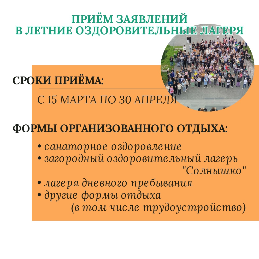 Запись в летние лагеря на сайте Госуслуг и через МФЦ стартует с 15 марта. Подача оригиналов документов будет производиться с 17 марта непосредственно в учреждениях. В школе №72 документы будут принимать также и для лагеря «Солнышко».